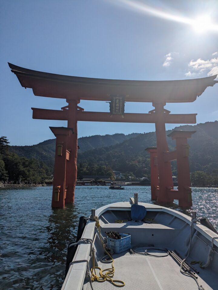 宮島を海から訪問し、天に祈りました。米分一の牡蠣の産地でもあります。